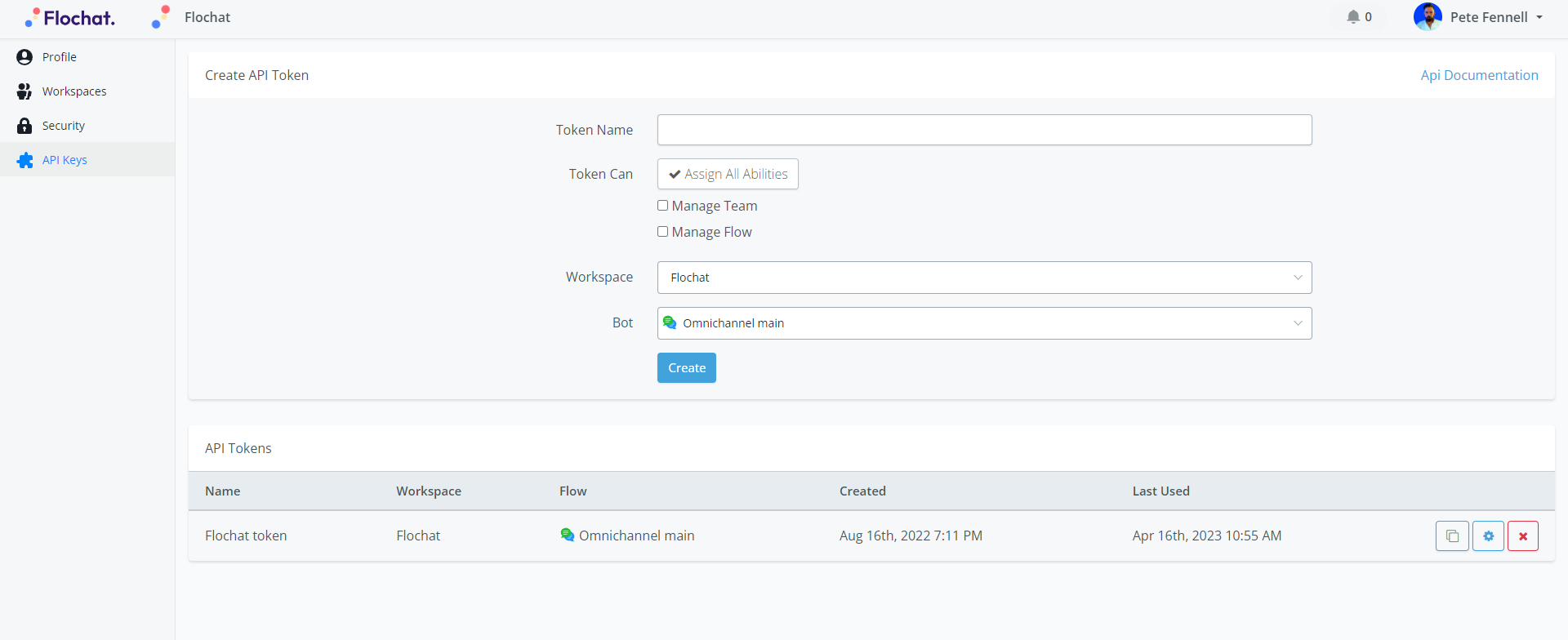 Select a workspace and a flow to create an API key to access the flow from API calls.