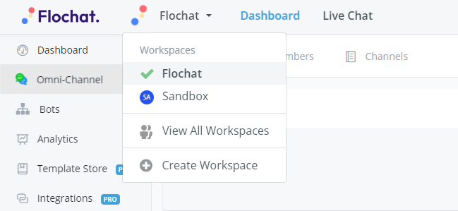 On the upper left corner of your dashboard, click a workspace name to switch to the workspace. By clicking view all workspaces, you will jump to the workspace management page: