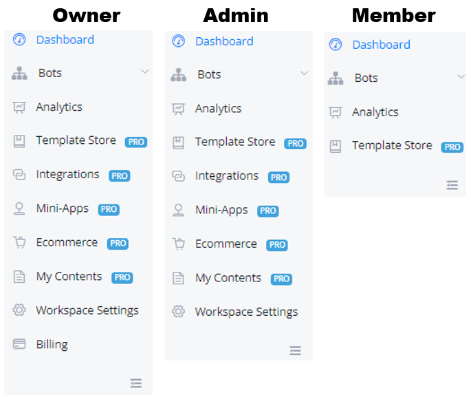 Each "Flochat account" is to be seen as a person/user. Members are all the people that have limited or full access to the workspace. There are 3 types of roles, Owner, Admin and Member.